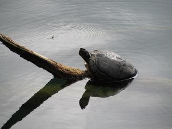 Keywords: turtle animal animals panzer lake nature water germany waters water turtle zoom mirroring bodnar nature reserve rest silent tree in the water pond