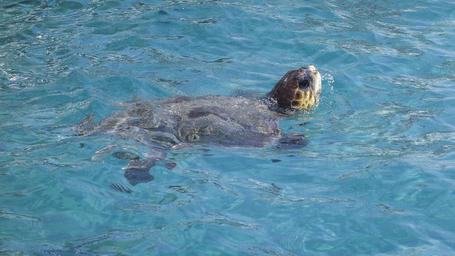 Keywords: turtle head head looking out of water water turtle portrait animal panzer wild greece large turtle sea holidays reptile island on the water