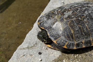 Keywords: turtle head drawing animal portrait close animal portrait panzer pattern hidden drawn head move head protection protect water turtle bank on the shore on the water at the pond water