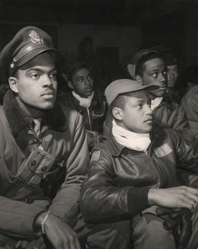 Keywords: Tuskegee Airmen 332nd Fighter Group pilots ppmsca13245u.jpg Photograph en Photograph shows members of the 332nd from left to right Robert W Williams Ottumwa IA Class 44-E; leather cap William H Holloman III St Louis Mo Class 44- ; cloth cap Ronald W Reeves Washington D C Class 44-G; leather cap Christopher W Newman St Louis MO Class 43-I; flight cap Walter M Downs New Orleans LA Class 43-B Source Photographer's notes and Tuskegee Airmen 332nd Fighter Group pilots 1 photographic print gelatin silver 1945-03 Title devised by Library staff Forms part of Toni Frissell Collection Library of Congress Library of Congress Prints and Photographs Division Washington D C 20540 USA LOC-image ppmsca 13245 Creator Toni Frissell 1945-03 No known restrictions on publication <gallery> Tuskegee Airmen 332nd Fighter Group pilots ppmsca13245u jpg 332ndFighterBriefing1945-high-res jpg </gallery> Toni Frissell http //www loc gov/rr/print/res/070_fris html 1945 Toni Frissell Italian Campaign World War II African American soldiers African American history of the 1940s 332d Fighter Group United States Army Air Forces World War II aircrew briefing |