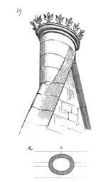 | Keywords: Tuyau.cheminee.Sully.sur.Loire.png L'ancien tuyau de la cheminée de la grand'salle du château de Sully-sur-Loire ayant été mis hors d'usage depuis le XVI<sup>e</sup> siècle par suite d'un changement de distribution intérieure a conservé sa couronne de fer battu ainsi que le fait voir la fig 19 Ce tuyau donne en section horizontale le plan A; l'extrémité du pignon de la salle lui sert de souche /Chimney Drawings of chimneys | ||||