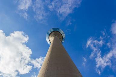 Keywords: tv tower tower height high about sky clouds blue düsseldorf