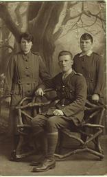 | Keywords: first world war firstworldwar ww1 wor life worlife social history socialhistory black and white photograph blackandwhitephotograph studio portrait studioportrait soldier waccs brother sister family mysterious boy girl chair seated uniform military armed forces armedforces regional faces of the first world war regionalfacesofthefirstworldwar wor faces: regional faces of the first world war worfacesregionalfacesofthefirstworldwar daily life dailylife children tyne and wear tyneandwear newcastle fascinating tree branch flower floor shoe sock shine trousers dress coat button crease jacket belt buckle shirt pocket timber hair clean shaven cleanshaven digital image digitalimage eye nose mouth lip ear head fac 'wor life' project worlifeproject arm chest shoulder leg hand feet cloth scenery stage set stageset shadow light stocking world war one worldwarone standing gathering record grain occasion groupshot people black and white Photograph, black and white, studio portrait of soldier and two WAACs (WW1), probably brother and sisters Place Made: Electric Photographic Studio & Station Road, 11, Ashington, Tyne and Wear, England, UK Regional Faces of the First World War. The photograph is from an album relating to the men, women and children from Tyne and Wear who lived, worked or fought during the First World War. Accompanying this photo is the biographical and supporting information that we have about them, but the full story is not always known. Our collections records are not very detailed in some cases. We need your help to fill in the blanks. Do you have any information to add to what is already here? A name? A location? What more can you find out and tell us about their life? If you have some extra information about this photograph, please add your comments, information and any links, images or text. Part of the ‘Wor Life’ project. To find out more please visit www.worlife.org.uk Photograph, black and white, studio portrait of soldier and two WAACs (WW1), probably brother and sisters Place Made: Electric Photographic Studio & Station Road, 11, Ashington, Tyne and Wear, England, UK Regional Faces of the First World War. The photograph is from an album relating to the men, women and children from Tyne and Wear who lived, worked or fought during the First World War. Accompanying this photo is the biographical and supporting information that we have about them, but the full story is not always known. Our collections records are not very detailed in some cases. We need your help to fill in the blanks. Do you have any information to add to what is already here? A name? A location? What more can you find out and tell us about their life? If you have some extra information about this photograph, please add your comments, information and any links, images or text. Part of the ‘Wor Life’ project. To find out more please visit www.worlife.org.uk |