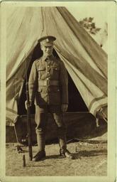 | Keywords: first world war firstworldwar ww1 wor life worlife tent crease world war one worldwarone wartime black and white photograph blackandwhitephotograph digital image digitalimage archives military social history socialhistory postcard soldier standing full uniform fulluniform uniform gun hand regional faces of the first world war regionalfacesofthefirstworldwar wor faces: regional faces of the first world war worfacesregionalfacesofthefirstworldwar mysterious unusual fascinating interesting white outline whiteoutline grass daylight shadow tree rope darkness belt buckle pocket button weapon posing portrait tyne and wear tyneandwear north east of england northeastofengland united kingdom unitedkingdom attentive clean shaven cleanshaven peg army people black and white Postcard, black and white, of a soldier standing outside a tent dressed in full uniform and holding a gun in his right hand Regional Faces of the First World War. The photograph is from an album relating to the men, women and children from Tyne and Wear who lived, worked or fought during the First World War. Accompanying this photo is the biographical and supporting information that we have about them, but the full story is not always known. Our collections records are not very detailed in some cases. We need your help to fill in the blanks. Do you have any information to add to what is already here? A name? A location? What more can you find out and tell us about their life? If you have some extra information about this photograph, please add your comments, information and any links, images or text. Part of the ‘Wor Life’ project. To find out more please visit www.worlife.org.uk Postcard, black and white, of a soldier standing outside a tent dressed in full uniform and holding a gun in his right hand Regional Faces of the First World War. The photograph is from an album relating to the men, women and children from Tyne and Wear who lived, worked or fought during the First World War. Accompanying this photo is the biographical and supporting information that we have about them, but the full story is not always known. Our collections records are not very detailed in some cases. We need your help to fill in the blanks. Do you have any information to add to what is already here? A name? A location? What more can you find out and tell us about their life? If you have some extra information about this photograph, please add your comments, information and any links, images or text. Part of the ‘Wor Life’ project. To find out more please visit www.worlife.org.uk |