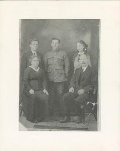 | Keywords: first world war firstworldwar ww1 wor life worlife white frame whiteframe black and white photograph blackandwhitephotograph digital image digitalimage social history socialhistory wartime archives portrait copy studio photograph studiophotograph studio room interior army uniform armyuniform military young man youngman boy girl man woman seated standing long dress longdress three-piece suit threepiecesuit regional faces of the first world war regionalfacesofthefirstworldwar wor faces: regional faces of the first world war worfacesregionalfacesofthefirstworldwar world war one worldwarone mysterious interesting unusual fascinating tyne and wear tyneandwear north east of england northeastofengland united kingdom unitedkingdom mark grain floor timber chair neutral background neutralbackground crease tie shirt button pocket leg shoe shine moustache hair attentive trousers clean shaven cleanshaven family family life familylife daily life dailylife home front homefront groupshot people monochrome black and white Photograph, black and white, copied. Studio photograph showing a young man in army uniform standing between a young boy and girl. Man and woman seated in front. The man is wearing a three-piece suit, woman in a long dress Regional Faces of the First World War. The photograph is from an album relating to the men, women and children from Tyne and Wear who lived, worked or fought during the First World War. Accompanying this photo is the biographical and supporting information that we have about them, but the full story is not always known. Our collections records are not very detailed in some cases. We need your help to fill in the blanks. Do you have any information to add to what is already here? A name? A location? What more can you find out and tell us about their life? If you have some extra information about this photograph, please add your comments, information and any links, images or text. Part of the ‘Wor Life’ project. To find out more please visit www.worlife.org.uk Photograph, black and white, copied. Studio photograph showing a young man in army uniform standing between a young boy and girl. Man and woman seated in front. The man is wearing a three-piece suit, woman in a long dress Regional Faces of the First World War. The photograph is from an album relating to the men, women and children from Tyne and Wear who lived, worked or fought during the First World War. Accompanying this photo is the biographical and supporting information that we have about them, but the full story is not always known. Our collections records are not very detailed in some cases. We need your help to fill in the blanks. Do you have any information to add to what is already here? A name? A location? What more can you find out and tell us about their life? If you have some extra information about this photograph, please add your comments, information and any links, images or text. Part of the ‘Wor Life’ project. To find out more please visit www.worlife.org.uk |