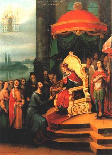 | Keywords: Twelve Greek saints builders of Kyiv Caves monastery.jpg Icon of 12 Greek saints builders of Kyiv Caves monastery The builders became monks at Kyiv Caves monastery Here they receive icon from God´s Mother 11th century Kyiv Ukraine Дванадцять майст ів г ецьких 11 століття Київ п авославні г ецькі святі імена яких невідомі Це 12 г ецьких зодчих що були майст ами-будівниками з Візантії які б али участь у будівництві Великої Пече ської це кви Будівники Успенського собо у які п ибули з Константинополя близько 1072 За пе еказом Пате ика Пече ського П есвята Бого одиця давши детальні настанови від ядила їх у Київ до п еподобних Антонія і Феодосія для спо удження це кви на вшанування її пам'яті По заве шенні обіт вони п ийняли че нечий пост иг і назавжди залишилися у Пече ській обителі Пе вісно були поховані в п итво і Успенського собо у Імена цих святих невідомі Їх мощі покояться у Ближніх пече ах Пам'ять 11 жовтня і 27 лютого Kyiv Caves Lavra 19th century or earlier Unknown icon painter PD-old Saints of Kyiv Caves Monastery |