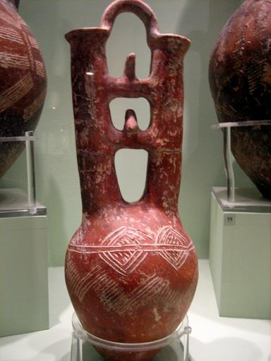Keywords: Twin necked jug.jpg Red polished Sourth Coast ware Early Cypriot I period 2500-2300BC from Museum of Cycladic Art at Athens Greece 2006-11-26 Photoed by User Mountain 25th-century BC pottery 24th-century BC pottery Cypriot antiquities in the Museum of Cycladic Art Athens Red polished ware |