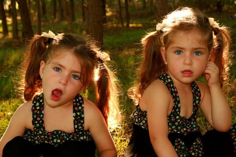 Keywords: twin sisters love girls blue eyes beauty innocence portrait double
