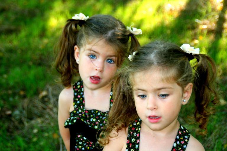 Keywords: twin sisters love girls blue eyes beauty innocence portrait double