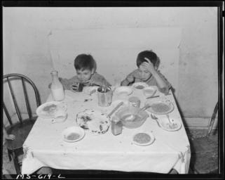 | Keywords: Two children of Joe L. Montoya, miner, eating in kitchen of their home in company housing project. Royal Coal... - NARA - 540532.jpg Scope and content General notes 540532 Local identifier 245-MS-619L Department of the Interior Solid Fuels Administration For War 04/19/1943 - 06/30/1947 NARA-Author Lee Russell 1903-1986 Photographer 2489414 <br /> Still Picture Records Section Special Media Archives Services Division NWCS-S National Archives at College Park 8601 Adelphi Road College Park MD 20740-6001 1946-07-06 Record group Record Group 245 Records of the Solid Fuels Administration for War 1937 - 1948 Record group ARC 572 Photographs of the Medical Survey of the Bituminous Coal Industry compiled 1946 - 1947 Series ARC 540230 File unit File unit ARC Variant control numbers NAIL Control Number NWDNS-245-MS-619L Other versions <gallery> File Two_children_of_Joe_L _Montoya _miner _eating_in_kitchen_of_their_home_in_company_housing_project _Royal_Coal _-_NARA_-_540532 tif tif File Two_children_of_Joe_L _Montoya _miner _eating_in_kitchen_of_their_home_in_company_housing_project _Royal_Coal _-_NARA_-_540532 jpg jpg </gallery> NARA-cooperation PD-USGov Coal mining in the United States |