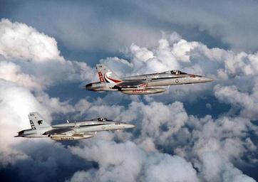 | Keywords: 960326-N-3843H-001 F-A-18 In Flight.jpg en 960326-N-3843H-001 Two F/A-18C Hornets from the Wildcats of Strike Fighter Squadron One Three One VFA-131 patrol the skies over the Arabian Gulf March 25 1996 VFA 131 is part of Carrier Air Wing Seven CVW-7 currently embarked on board the U S Navy s nuclear powered aircraft carrier USS George Washington CVN 73 The George Washington is presently deployed to the Arabian Gulf in support of UN-led sanctions against Iraq under Operation Southern Watch U S Navy photo by Lt Tom Haeussler Released 960326-N-3843H-001 Navy http //www navy mil/view_image asp id 403 U S Navy photo by Lt Tom Haeussler PD-USGov-Military-Navy F/A-18C Hornet in flight Strike Fighter Squadron 131 United States Navy |