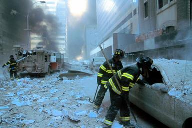 | Keywords: [Two fire fighters looking into car while another New York City fire fighter pulls water hose from fire truck amid smoke and debris following September 11th terrorist attack on World Trade Center, New York City]. Sept. 11, 2001. Image. Retrieved from the Library of Congress, www.loc.gov/pictures/item/2002719355/. (Accessed September 03, 2016.) Call Number: LC-A05- C09 [item] [P&amp;P] Forms part of: Collection of unattributed photographs... The 250 color slides made at the World Trade Towers in New York City on September 11, 2001, received from the New York District Attorney's office from an unattributed photographer, are in the public domain. Privacy and publicity rights may apply. These slides were received from the New York District Attorney's office with the photographer relinquishing any and all copyright and right of attribution. Therefore, the photographer's name will not be associated with these photographs. [Two fire fighters looking into car while another New York City fire fighter pulls water hose from fire truck amid smoke and debris following September 11th terrorist attack on World Trade Center, New York City]. Sept. 11, 2001. Image. Retrieved from the Library of Congress, www.loc.gov/pictures/item/2002719355/. (Accessed September 03, 2016.) Call Number: LC-A05- C09 [item] [P&P] Forms part of: Collection of unattributed photographs... The 250 color slides made at the World Trade Towers in New York City on September 11, 2001, received from the New York District Attorney's office from an unattributed photographer, are in the public domain. Privacy and publicity rights may apply. These slides were received from the New York District Attorney's office with the photographer relinquishing any and all copyright and right of attribution. Therefore, the photographer's name will not be associated with these photographs. [Two fire fighters looking into car while another New York City fire fighter pulls water hose from fire truck amid smoke and debris following September 11th terrorist attack on World Trade Center, New York City]. Sept. 11, 2001. Image. Retrieved from the Library of Congress, <a href="http://www.loc.gov/pictures/item/2002719355/" rel="nofollow">www.loc.gov/pictures/item/2002719355/</a>. (Accessed September 03, 2016.)