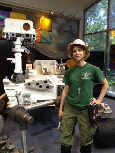 | Keywords: Two geologists - Emily Lakdawalla and Curiosity.jpg en Emily dresses as a field geologist to compare her skills with those of the Mars rover Curiosity represented by a model located in the lobby of the Spaceflight Operations Facility building 180 at the Jet Propulsion Laboratory 2012-06-22 own Elakdawalla cc-zero Uploaded with UploadWizard Emily Lakdawalla | ||||