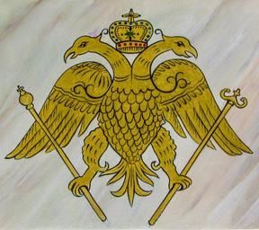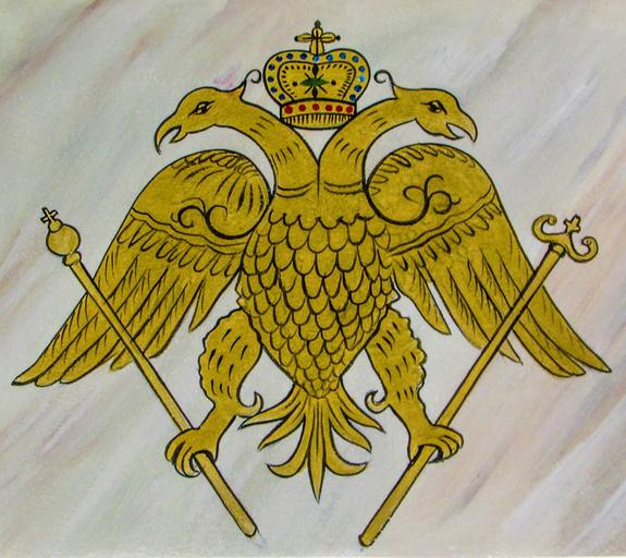 Keywords: two headed eagle emblem symbol byzantium orthodox double-headed empire eagle golden crown imperial church painting marble cyprus