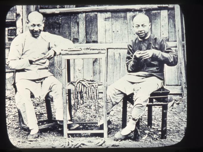 | Keywords: Two men counting brass coins, Changde, Hunan, China, ca.1900-1919 (IMP-YDS-RG008-358-0008-0004).jpg en <br> Two men counting brass coins Changde Hunan China ca 1900-1919 Counting 'cash' in the days before copper and silver coins were minted The brass cash had square holes and were strung in units of 100 ten of which made a 'tiao' the rough equivalent of a dollar The 2 young men in the photo Kung and Pao came with a third Tai to OTL Oliver Tracy Logan soon after his return in 1901 and asked to be trained in Western medicine After a sort of apprenticeship in the old hospital they were sent to medical school were graduated and returned to join the staff in Chanteh now Changde Dr Pao right was with OTL Oliver Tracy Loganat the end and was heartbroken that he could not save him ; Captions for this set of lantern slides from the papers of Oliver and Jennie Logan American Presbyterian missionaries in Hunan were provided by their daughter Elsa Subject aat group portraits Photographer Unidentified Filename IMP-YDS-RG008-358-0008-0004 Geographic subject Hunan; China Subject unesco Medical personnel Part of collection International Mission Photography Archive ca 1860-ca 1960 Type images Part of subcollection Photographs from the Yale Divinity School Library New Haven Connecticut ca 1880-1950 Part of repository Yale Divinity Library Special Collections Repository name Yale University Divinity School Day Missions Library Format lantern slides Archival file impa_Volume288/IMP-YDS-RG008-358-0008-0004 tiff Repository address Yale University Divinity School Library 409 Prospect Street New Haven CT 06511 Part of series Oliver and Jennie Logan Papers Repository email Divinity Library yale edu Date created 1900/1919 Publisher of the digital version University of Southern California Libraries Format aat photographs Legacy record ID impa-m66077 Access conditions http //www library yale edu/div/reproductions html Coverage date 1900/1919 1900/1919 Unidentified http //digitallibrary usc edu/cdm/ref/collection/p15799coll123/id/51481 PD-old-70-1923 Magic lantern images Images from USC Digital Library uploaded by Fæ International Mission Photography Archive ca 1860-ca 1960 |