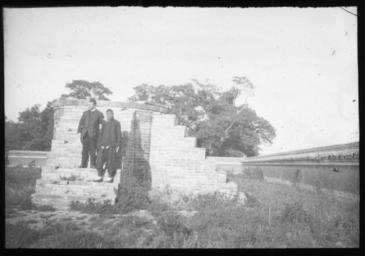 ''Two men standing on brick stairs, China, ca. 1918-1938