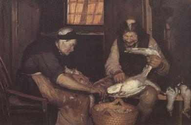 | Keywords: Two Old People Plucking Gulls (Anna Ancher).jpg Artwork Q21074934 Creator Anna Ancher To gamle der plukker måger de Zwei Alte rupfen Möwen en Two old people plucking gulls ca 1883 oil canvas cm 66 2 110 8 Den Hirschsprungske Samling Copenhagen 1 http //4 bp blogspot com/_0n9IExEpmh8/S5IOncdihLI/AAAAAAAAR5k/NF3M4eNpXeI/s1600-h/Two+Old+gulls+pluck jpg blogspot com<br/>2 http //www zeno org/nid/20003864936 zeno org PD-old-auto-1923 1935 Other versions PD-old Paintings by Anna Ancher Paintings by Anna Ancher in the Hirschsprung Collection Laridae in art Plucking poultry in art Images from zeno org Paintings of women with birds |