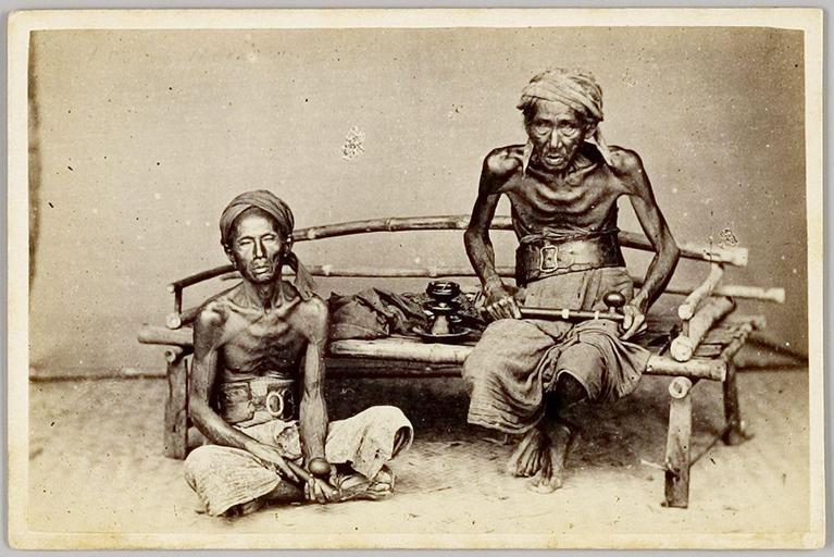 | Keywords: Two Opium Smokers on Java WDL2899.jpg Artwork ru Вудбе и Вальте Б Вальте Бентли 1834-1885 fr Page James en Page James zh 伍德伯里 沃尔特·B (沃尔特· 特利) 1834-1885 pt Página James ar بيج جيمس es Page James ru Два ку ильщика опиума на ост ове Ява fr Deux fumeurs d'opium à Java en Two Opium Smokers on Java zh 爪哇的两位吸鸦片 pt Dois Fumantes de Ópio em Java ar اثنان من مدخني الأفيون في جاوا ru а этой фотог афии <i> carte-de-visite </i> изоб ажены два ку ильщика опиума на Яве Ку ение опиума было завезено на Яву голландцами; в Батавии сов еменная Джака та был отк ыт к упный по т и налажен импо т вы ащенного в Индии опиума для местной еализации и вывоза в Китай Ку ение опиума поначалу было элементом социальной жизни яванской а исток атии но в XIX веке ши око асп ост анилось с еди абочих обслуживавших астущую колониальную экономику Фотог афия была сделана фи мой Вудбе и и Пейдж основанной в 1857 году английскими фотог афами Уолте ом Бентли Вудбе и и Джеймсом Пейджем Фи ма специализи овалась на по т етах этног афической фотог афии и сценах из жизни голландской Ост-Индии Фотог афия является частью коллекций KITLV Ко олевского ниде ландского института по изучению Юго-Восточной Азии и Ка ибского а хипелага в Лейдене <br>Опиум fr Cette photographie de <i>carte de visite</i> montre deux fumeurs d'opium sur l'île de Java La consommation d'opium fut introduite à Java par les Hollandais qui établirent un port important à Batavia actuelle Jakarta et importèrent l'opium cultivé en Inde pour la vente locale et plus tard l'exporter de nouveau vers la Chine L'opium fut d'abord essentiellement réservé à la vie sociale des classes supérieures javanaises mais au 19ème siècle il se répandit de plus en plus chez les travailleurs au service de l'expansion de l'économie coloniale La photographie fut prise par le studio Woodbury Page créé en 1857 par les photographes britanniques Walter Bentley Woodbury et James Page spécialisés dans les portraits images ethnographiques et photographies de la vie dans les Indes orientales hollandaises La photographie provient des collections du KITLV/L'Institut Royal Néerlandais d'études de l'Asie du Sud-Est et des Caraïbes à Leiden <br>Opium en This <i>carte-de-visite</i> photograph shows two opium smokers on the island of Java Opium smoking was introduced into Java by the Dutch who established a major port at Batavia present-day Jakarta and imported Indian-grown opium for local sale and later for re-export to China Opium smoking was at first mainly a part of social life among Javanese upper classes but in the 19th century it increasingly spread to the laborers who served the expanding colonial economy The photograph was taken by the firm of Woodbury Page which was established by the British photographers Walter Bentley Woodbury and James Page in 1857 and specialized in portraits ethnographic images and photographs of life in the Dutch East Indies The photograph is from the collections of the KITLV/Royal Netherlands Institute of Southeast Asian and Caribbean Studies in Leiden <br>Opium zh 这张 <i>carte-de-visite</i> 照片 拍摄的是爪哇岛上的两位鸦片吸食 爪哇的鸦片是由荷兰引入的,荷兰 巴达维亚(今雅加达)建 主要港口,进口印度种植的鸦片 当 出售,后 还将鸦片再出口至中国 吸食鸦片 主要是爪哇上层阶级社交生活的 部分,但是 19 世纪吸食鸦片渐渐蔓延到不断扩张的殖民经济中的广大劳动 身上 这张照片是伍德伯里和佩奇公司拍摄的,这家公司是由英国摄影师沃尔特· 特利·伍德伯里和詹姆斯·佩奇于 1857 年成立的,专门拍摄人像 人种图像和荷兰 印度生活的照片 这张照片出自位于莱顿的 KITLV /荷兰皇家 南亚和加勒比研究 的藏品 <br>鸦片 pt Esta fotografia <i>carte-de-visite</i> mostra dois fumantes de ópio na ilha de Java O tabagismo do ópio foi introduzido em Java pelos holandeses que estabeleceram um importante porto na Batávia atual Jacarta e importavam o ópio cultivado na Índia para venda local e mais tarde para reexportar para a China A princípio o tabagismo do ópio era essencialmente uma parte da vida social entre as classes javanesas mais altas; no século XIX porém espalhou-se cada vez mais entre os trabalhadores que serviam à economia colonial em expansão A fotografia foi tirada pela empresa de Woodbury Page que foi criada em 1857 pelos fotógrafos britânicos Walter Bentley Woodbury e James Page e especializava-se em retratos imagens etnográficas e fotografias do cotidiano das Índias Orientais Holandesas A fotografia é das coleções do Real Instituto Holandês de Estudos do Caribe e do Sudeste Asiático/KITLV em Leiden <br>Ópio ar تظهر هذه <i>الصورة في حجم الكارت فيزيت</i> إثنين من مدخني الأفيون على جزيرة جاوا وصل الأفيون إلى جاوا بواسطة الهولنديين الذين أنشؤوا ميناء رئيسيا في باتافيا جاكارتا حاليا واستوردوا الأفيون الهندي للمبيع المحلي وفي وقت لاحق لإعادة تصديره إلى الصين وفي البداية كان تدخين 
