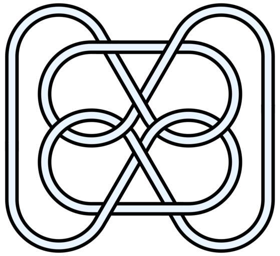 | Keywords: Two-trefoils-on-loop doubly-interlinked 10crossings.svg Two trefoil knots on a closed loop where the trefoils are doubly-interlinked with each other The overall knot is a prime 10-crossing knot mathematical knot 10<sub>120</sub> not a composite knot Converted from the following vector PostScript source code <pre> 306 496 translate 3 dup scale/factor 250 1 456696 mul def /radius 100 5000 sqrt add 1 456696 mul def/z factor dup mul 2 div sqrt def/Q factor dup mul 6 div sqrt neg def 92 96 1 setrgbcolor/A gsave 36 setlinewidth 679 388 -250 moveto z 1 67 mul 0 673 add z 0 19 mul 253 sub radius 0 150 arc z neg Q radius 330 90 arcn z Q radius 90 210 arcn z -1 67 mul 0 673 sub z 0 19 mul 253 sub radius 30 180 arc 0 -500 rlineto gsave 72 setlinewidth 0 setgray stroke grestore stroke 72 setlinewidth 0 setgray 3 -232 100 moveto 119 0 rlineto stroke 120 rotate repeat 36 setlinewidth 92 96 1 setrgbcolor 3 -234 100 moveto 123 0 rlineto stroke 120 rotate repeat grestore def A gsave 0 -659 translate -1 -1 scale A grestore 72 setlinewidth 0 setgray z neg Q radius 303 322 arc stroke z Q radius 303 322 arc stroke 679 388 -205 moveto 0 -10 rlineto stroke -679 388 -410 moveto 0 10 rlineto stroke 36 setlinewidth 92 96 1 setrgbcolor z neg Q radius 302 323 arc stroke z Q radius 302 323 arc stroke 679 388 -200 moveto 0 -20 rlineto stroke -679 388 -415 moveto 0 20 rlineto stroke showpage EOF</pre> 2010 PostScript 2013 SVG AnonMoos This image was first uploaded in PNG form to http //katlas math toronto edu/wiki/File Two-trefoils-10crossings png Knots knot theory 10 crossing number knots and links Images with PostScript source code Knots and links on transparent background Outline knots and links |