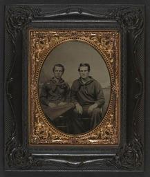 | Keywords: library of congress libraryofcongress dc:identifier=http://hdl.loc.gov/loc.pnp/ppmsca.27529 dc:identifier=httphdllocgovlocpnpppmsca27529 xmlns:dc=http://purl.org/dc/elements/1.1/ xmlns:dc=httppurlorgdcelements11 u.s. civil war uscivilwar american civil war americancivilwar the civil war thecivilwar civil war civilwar war between the states warbetweenthestates united states of america unitedstatesofamerica u.s.a. usa the union theunion union the north thenorth yankee yankees united states navy unitedstatesnavy us navy usnavy usn sailor sailors people groupshot picture frame photo border indoor [Two unidentified sailors in Union uniforms in front of painted backdrop showing sea with monitor class warship and another ship] [between 1861 and 1865] 1 photograph : half-plate tintype, hand-colored ; 20.2 x 17.3 cm (frame) Notes: Title devised by Library staff. Case: Ornate scroll thermoplastic frame. Gift; Tom Liljenquist; 2010; (DLC/PP-2010:105). Subjects: United States.--Navy--People--1860-1870. Sailors--Union--1860-1870. Military uniforms--Union--1860-1870. United States--History--Civil War, 1861-1865--Military personnel--Union. Format: Group portraits--1860-1870. Portrait photographs--1860-1870. Tintypes--Hand-colored--1860-1870. Rights Info: No known restrictions on publication. Repository: Library of Congress, Prints and Photographs Division, Washington, D.C. 20540 USA, hdl.loc.gov/loc.pnp/pp.print Part Of: Ambrotype/Tintype filing series (Library of Congress) (DLC) 2010650518 Liljenquist Family collection (Library of Congress) (DLC) 2010650519 More information about this collection is available at hdl.loc.gov/loc.pnp/pp.lilj Persistent URL: hdl.loc.gov/loc.pnp/ppmsca.27529 Call Number: AMB/TIN no. 5020 [Two unidentified sailors in Union uniforms in front of painted backdrop showing sea with monitor class warship and another ship] [between 1861 and 1865] 1 photograph : half-plate tintype, hand-colored ; 20.2 x 17.3 cm (frame) Notes: Title devised by Library staff. Case: Ornate scroll thermoplastic frame. Gift; Tom Liljenquist; 2010; (DLC/PP-2010:105). Subjects: United States.--Navy--People--1860-1870. Sailors--Union--1860-1870. Military uniforms--Union--1860-1870. United States--History--Civil War, 1861-1865--Military personnel--Union. Format: Group portraits--1860-1870. Portrait photographs--1860-1870. Tintypes--Hand-colored--1860-1870. Rights Info: No known restrictions on publication. Repository: Library of Congress, Prints and Photographs Division, Washington, D.C. 20540 USA, hdl.loc.gov/loc.pnp/pp.print Part Of: Ambrotype/Tintype filing series (Library of Congress) (DLC) 2010650518 Liljenquist Family collection (Library of Congress) (DLC) 2010650519 More information about this collection is available at hdl.loc.gov/loc.pnp/pp.lilj Persistent URL: hdl.loc.gov/loc.pnp/ppmsca.27529 Call Number: AMB/TIN no. 5020 |