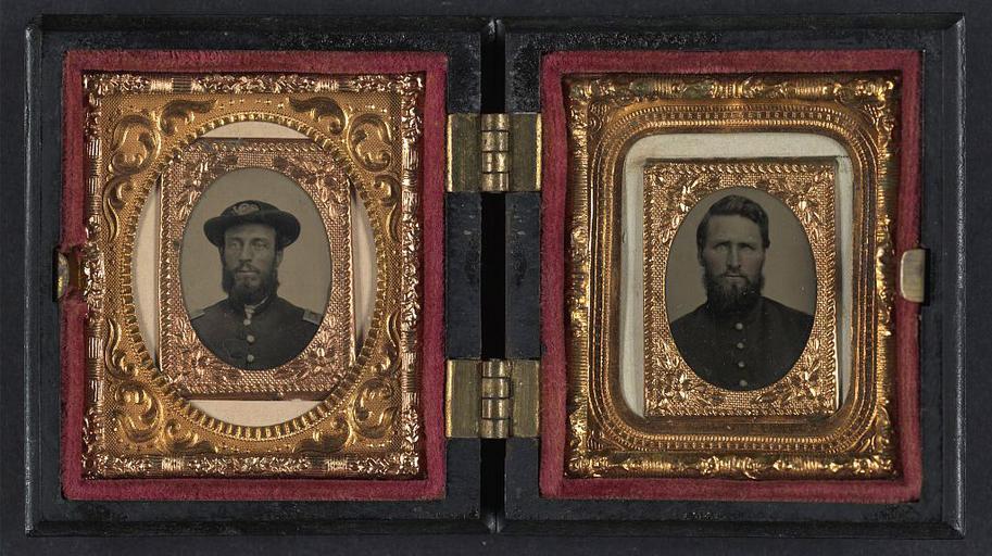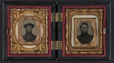 | Keywords: library of congress libraryofcongress dc:identifier=http://hdl.loc.gov/loc.pnp/ppmsca.27456 dc:identifier=httphdllocgovlocpnpppmsca27456 xmlns:dc=http://purl.org/dc/elements/1.1/ xmlns:dc=httppurlorgdcelements11 u.s. civil war uscivilwar american civil war americancivilwar the civil war thecivilwar civil war civilwar war between the states warbetweenthestates united states of america unitedstatesofamerica u.s.a. usa the union theunion union the north thenorth yankee yankees soldier soldiers people groupshot architecture door picture frame photo border indoor [Two unidentified soldiers in Union uniforms] [between 1861 and 1865] 2 photographs in 1 case : gem tintype, hand-colored ; 5.4 x 4.8 cm (case) Notes: Title devised by Library staff. Case: Berg, no. Berg 1-178. Gift; Tom Liljenquist; 2010; (DLC/PP-2010:105). Subjects: United States.--Army.--People--1860-1870. Soldiers--Union--1860-1870. Military uniforms--Union--1860-1870. United States--History--Civil War, 1861-1865--Military personnel--Union. Format: Portrait photographs--1860-1870. Tintypes--Hand-colored--1860-1870. Rights Info: No known restrictions on publication. Repository: Library of Congress, Prints and Photographs Division, Washington, D.C. 20540 USA, hdl.loc.gov/loc.pnp/pp.print Part Of: Ambrotype/Tintype filing series (Library of Congress) (DLC) 2010650518 Liljenquist Family collection (Library of Congress) (DLC) 2010650519 More information about this collection is available at hdl.loc.gov/loc.pnp/pp.lilj Persistent URL: hdl.loc.gov/loc.pnp/ppmsca.27456 Call Number: AMB/TIN no. 2585 [Two unidentified soldiers in Union uniforms] [between 1861 and 1865] 2 photographs in 1 case : gem tintype, hand-colored ; 5.4 x 4.8 cm (case) Notes: Title devised by Library staff. Case: Berg, no. Berg 1-178. Gift; Tom Liljenquist; 2010; (DLC/PP-2010:105). Subjects: United States.--Army.--People--1860-1870. Soldiers--Union--1860-1870. Military uniforms--Union--1860-1870. United States--History--Civil War, 1861-1865--Military personnel--Union. Format: Portrait photographs--1860-1870. Tintypes--Hand-colored--1860-1870. Rights Info: No known restrictions on publication. Repository: Library of Congress, Prints and Photographs Division, Washington, D.C. 20540 USA, hdl.loc.gov/loc.pnp/pp.print Part Of: Ambrotype/Tintype filing series (Library of Congress) (DLC) 2010650518 Liljenquist Family collection (Library of Congress) (DLC) 2010650519 More information about this collection is available at hdl.loc.gov/loc.pnp/pp.lilj Persistent URL: hdl.loc.gov/loc.pnp/ppmsca.27456 Call Number: AMB/TIN no. 2585 |