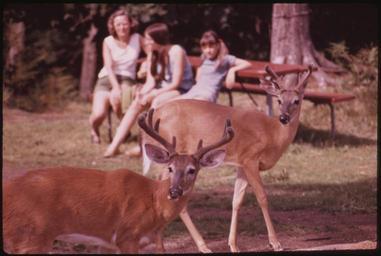 | Keywords: TWO WHITE-TAILED BUCKS WITH ANTLERS IN VELVET WALK TO A FEEDING STATION ATOP MCCAULEY MOUNTAIN NEAR OLD FORGE, IN THE... - NARA - 554619.jpg Scope and content General notes 554619 Local identifier 412-DA-12167 Environmental Protection Agency 12/02/1970 - NARA-Author LaBastille Anne 1938- Photographer 1422473 <br /> New York New York state United States North and Central America inhabited place 4191644 40 7 -74 <br /> Still Picture Records Section Special Media Archives Services Division NWCS-S National Archives at College Park 8601 Adelphi Road College Park MD 20740-6001 08/1973 Record group Record Group 412 Records of the Environmental Protection Agency 1944 - 2006 Record group ARC 708 DOCUMERICA The Environmental Protection Agency's Program to Photographically Document Subjects of Environmental Concern compiled 1972 - 1977 Series ARC 542493 File unit File unit ARC Variant control numbers Agency-Assigned Identifier 203/47/012167<br /> NAIL Control Number NWDNS-412-DA-12167 Other versions <gallery> File TWO_WHITE-TAILED_BUCKS_WITH_ANTLERS_IN_VELVET_WALK_TO_A_FEEDING_STATION_ATOP_MCCAULEY_MOUNTAIN_NEAR_OLD_FORGE _IN_THE _-_NARA_-_554619 tif tif File TWO_WHITE-TAILED_BUCKS_WITH_ANTLERS_IN_VELVET_WALK_TO_A_FEEDING_STATION_ATOP_MCCAULEY_MOUNTAIN_NEAR_OLD_FORGE _IN_THE _-_NARA_-_554619 jpg jpg </gallery> NARA-cooperation PD-USGov Mammals of Adirondacks Unidentified Cervidae Male Cervidae |