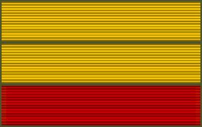 | Keywords: TwofoldGoldenAndRedLaces.png en Combat Injury Badge for wounds received in line of duty Composed of two golden and one red lace for that the bearer has been wounded thrice two severe wounds golden laces and one non-lethal wound red lace 2012-10-22 13 00 10 own George Serdechny Combat Injury Badge Red ribbons Yellow ribbons Uploaded with UploadWizard |
