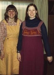 | Keywords: Twostand.jpg At left a yellow dungaree skirt worn over a check shirt At right a purple jumper dress or pinafore dress worn over a black top 2007-02-13 own assumed Ursnaq Personality rights Portraits of adolescent girls Jumper dresses 20th-century fashion Women smiling while standing Yellow skirts Purple dresses |