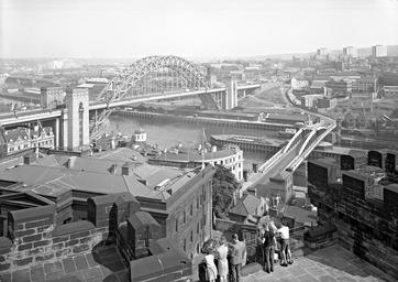 | Keywords: newcastle upon tyne newcastleupontyne 1960s gateshead castle keep castlekeep tyne bridge tynebridge swing bridge swingbridge river tyne rivertyne quays scenic scenic views of newcastle scenicviewsofnewcastle august 1963 august1963 wonderful majestic impressive unusual interesting fascinating land north east of england northeastofengland united kingdom unitedkingdom turners ltd turnersltd bridge river city buildings bank daylight sky ground industry street view streetview digital image digitalimage black and white photograph blackandwhitephotograph brick wall roof window frame construction structure development premises businesses industrial social abstract shadow gathering people flag pole standing observing clothing crease hair blur grain stone social history socialhistory blackandwhite monochrome outdoor black and white A view of the Tyne Bridge and the Swing Bridge from the Castle Keep, Newcastle upon Tyne, August 1963 (TWAM ref. DT.TUR/2/31921L). Tyne & Wear Archives presents a series of images taken by the Newcastle-based photographers Turners Ltd. The firm had an excellent reputation and was regularly commissioned by local businesses to take photographs of their products and their premises. Turners also sometimes took aerial and street views on their own account and many of those images have survived, giving us a fascinating glimpse of life in the North East of England in the second half of the Twentieth Century. (Copyright) We're happy for you to share these digital images within the spirit of The Commons. Please cite 'Tyne & Wear Archives & Museums' when reusing. Certain restrictions on high quality reproductions and commercial use of the original physical version apply though; if you're unsure please email archives@twmuseums.org.uk A view of the Tyne Bridge and the Swing Bridge from the Castle Keep, Newcastle upon Tyne, August 1963 (TWAM ref. DT.TUR/2/31921L). Tyne & Wear Archives presents a series of images taken by the Newcastle-based photographers Turners Ltd. The firm had an excellent reputation and was regularly commissioned by local businesses to take photographs of their products and their premises. Turners also sometimes took aerial and street views on their own account and many of those images have survived, giving us a fascinating glimpse of life in the North East of England in the second half of the Twentieth Century. (Copyright) We're happy for you to share these digital images within the spirit of The Commons. Please cite 'Tyne & Wear Archives & Museums' when reusing. Certain restrictions on high quality reproductions and commercial use of the original physical version apply though; if you're unsure please email archives@twmuseums.org.uk |