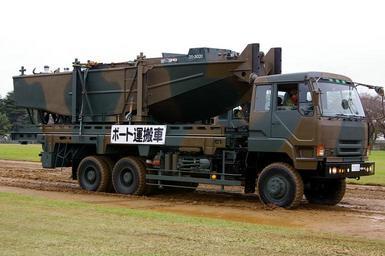 Keywords: Type92 Pontoon bridge(boat).JPG JGSDF Type 92 Floating bridge