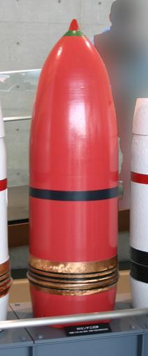 Keywords: Type 3 incendiary shrapnel round.jpg type 3 Shell IJN 三式弾 大日 国海軍 Kk8998982's file 2005-05-29 Kk8998982 public domain World War II artillery ammunition 40 cm/45 Type 94 naval gun Yamato Museum