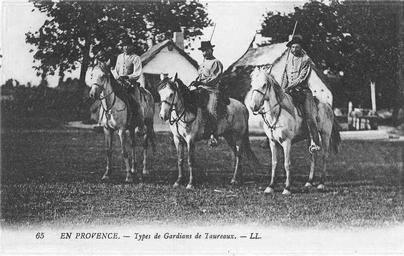 | Keywords: Types de gardians.jpg fr Types de gardians en Camargue dans les années 1900 2012-02-06 Carte postale ancienne L L Custom license marker 2012 02 06 PD-old-70 Uploaded with UploadWizard Gardian History of Bouches-du-Rhône Postcards of Camargue Horse riding in France Camargue horse Peasants in early 20th century |