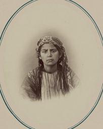 | Keywords: Types of Nationalities in the Turkestan Krai. Jewish Women. Banu Ai WDL11031.png Artwork ru Кун Александ Людвигович 1840 1888 гг fr Kun Aleksandr L 1840-1888 en Kun Aleksandr L 1840-1888 zh 亚历山大·L· ,1840-1888 年 pt Kun Aleksandr L 1840-1888 ar كُن، ألكسندر ل ، 1840-1888 es Kun Aleksandr L 1840-1888 ru Типы на одностей Ту кестанского к ая Ев ейские женщины Бану-ай fr Types de nationalités dans le kraï du Turkestan Femmes juives Banu Ai en Types of Nationalities in the Turkestan Krai Jewish Women Banu Ai zh 其斯 边疆区民族类型 犹太妇女 巴努 艾 pt Tipos de nacionalidades na krai do Turquestão Mulheres judias Banu Ai ar أنواع الجنسيات في إقليم تُرْكِستان النساء اليهوديات بانو آي ru Эта фотог афия входит в этног афическую часть Ту кестанского альбома всесто оннего исследования Цент альной Азии п едп инятого после того как в 1860-х годах в егионе установилось господство Российской импе ии Альбом созданный по аспо яжению гене ала Константина Пет овича фон Кауфмана 1818-1882 гг пе вого гене ал-губе нато а оссийского Ту кестана состоит из четы ех частей в шести томах Часть а хеологическая два тома Часть этног афическая два тома Часть п омысловая один том и Часть исто ическая один том Основным составителем альбома был усский востоковед Александ Людвигович Кун аботавший совместно с иколаем Венедиктовичем Богаевским В альбоме п едставлено около 1200 фотог афий а также а хитекту ные планы аква ельные исунки и ка ты Часть этног афическая включает 491 отдельную фотог афию на 163 листах а фотог афиях изоб ажены п едставители азличных на одов егиона листы 1-33 повседневная жизнь и итуалы листы 34-91 а также виды де евень и го одов уличные то говцы и комме ческая деятельность листы 92-163 <br>Одежда и платье; Этног афические фотог афии; Девушки; Головные убо ы; Ев еи; Фотог афические исследования; По т етные фотог афии; По т еты fr Cette photographie est extraite de la partie ethnographique de l'<em>Album du Turkestan</em> étude visuelle complète de l'Asie centrale entreprise après que l'Empire russe prit le contrôle de la région dans les années 1860 Commandé par le général Konstantin Petrovich von Kaufman 1818 1882 premier gouverneur général du Turkestan russe l'album est composé de six volumes répartis en quatre parties la partie archéologique deux volumes la partie ethnologique deux volumes la partie sur les métiers un volume et la partie historique un volume L'album fut essentiellement compilé par l'orientaliste russe Aleksandr L Kun assisté de Nikolai V Bogaevskii Il comporte près de 1 200 photographies et inclut également des plans architecturaux des dessins à l'aquarelle et des cartes La partie ethnographique compte 491 photographies sur 163 planches montrant des individus des différentes peuplades de la région planches 1 à 33 des scènes de la vie quotidienne et des rites planches 34 à 91 ainsi que des vues de villages et de villes de vendeurs ambulants et d'activités commerciales planches 92 à 163 <br>Vêtements et habits; Photographies ethnographiques; Jeunes filles; Coiffures; Juifs; Inventaires photographiques; Portraits photographiques; Portraits en This photograph is from the ethnographical part of <em>Turkestan Album</em><em> </em>a comprehensive visual survey of Central Asia undertaken after imperial Russia assumed control of the region in the 1860s Commissioned by General Konstantin Petrovich von Kaufman 1818 82 the first governor-general of Russian Turkestan the album is in four parts spanning six volumes Archaeological Part two volumes ; Ethnographic Part two volumes ; Trades Part one volume ; and Historical Part one volume The principal compiler was Russian Orientalist Aleksandr L Kun who was assisted by Nikolai V Bogaevskii The album contains some 1 200 photographs along with architectural plans watercolor drawings and maps The Ethnographic Part includes 491 individual photographs on 163 plates The photographs show individuals representing the different peoples of the region Plates 1 33 ; daily life and rituals Plates 34 91 ; and views of villages and cities street vendors and commercial activities Plates 92 163 <br>Clothing and dress; Ethnographic photographs; Girls; Headgear; Jews; Photographic surveys; Portrait photographs; Portraits zh 这张照片出自<em> 其斯 相册 </em><em></em>的民族部分,该相册是俄罗斯 国 19 世纪 60 年代取得中亚控制 后, 手制 的 部针对该 区的综合 图像调查记录 相册由俄罗斯驻 其斯 (俄罗斯 国中亚属 的名称)首任 康斯 丁·彼得罗维奇·凡· 夫曼(Konstantin Petrovich von Kaufman,1818 82 年)将军赞助完成,共分六卷,四个部分: 古部分 (两卷); 民族部分 (两卷); 贸易部分 ( 卷)和 历史部分 ( 卷) 相册的主要编纂人是俄罗斯 方学 亚历山大·L· Aleksandr L Kun ,并由尼可莱·V·柏盖维斯基 Nikolai V Bogaevskii 协助完成 相册共含 1200 张照片,