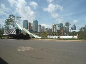 | Keywords: Typhoon Rammasun (2014) in Haikou - by Century Bridge.JPG en Typhoon Rammasun 2014 in Haikou Hainan China Advertising sign blown down at the east end of the lagoon at the east side of Evergreen park Note the broken windows of the buildings in the background on Binhai Road 2014-07-18 21 15 23 own Anna Frodesiak cc-zero Typhoon Rammasun 2014 in Haikou Files by User Anna Frodesiak Uploaded with UploadWizard | ||||