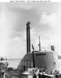 | Keywords: U-3008 Key West.jpg en USS U-3008 ex-German submarine U-3008 View of the submarine's conning tower with her snorkel raised Taken at Key West Naval Station Florida Note her insignia painted on the front of the conning tower ru емецкая подводная лодка U-3008 типа XXI доставшаяся США в качестве т офея и вошедшая в состав В Ф США как тестовая подводная лодка Видна надст ойка лодки с поднятым воздухозабо ником Снимок сделан на военно-мо ской базе Кей Вест шт Фло ида 25 июля 1947 года http //www history navy mil USN 1947-07-25 PD-USGov-Military-Navy 1947 in Florida History of Key West Florida U-3008 submarine 1944 Submarine snorkels |