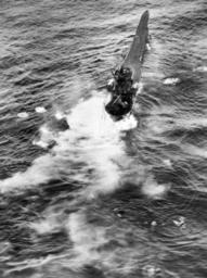 | Keywords: U-426 sinkt.jpg en Oblique aerial photograph taken from Short Sunderland Mark III EK586 'U' of No 10 Squadron RAAF during an attack on German type VIIC submarine U 426 in the Bay of Biscay During a midwinter 'Percussion' patrol in the Bay of Biscay Sunderland 'U' of 10 Squadron RAAF spotted the German submarine U 426 outward bound at a distance of 12 miles in excellent visibility Confidently remaining on the surface U-426 opened fire at five miles with its daunting armament of an automatic 30mm gun and 4x20mm cannon Flying Officer J P Roberts piloting the Sunderland closed to 1 200 yards and hosed the U-boat's gun platforms with his four fixed bow-mounted machine guns a new armament devised by the Australians for the Sunderland This caused chaos on the U-426 bridge The boat was unable to further defend itself and Roberts pressed home a depth-charge attack U 426 was holed at the rear The crew abandoned the rapidly sinking boat but none of them were to survive the exposure to the winter conditions C 4082 205023258 1 SUK11747 No 10 Squadron RAAF 1944-08-01 PD-Australia Type VII submarines Black and white photographs Collections of the Imperial War Museum Battle of the Atlantic |