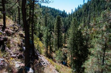 | Keywords: arizona barbershop canyon barbershopcanyon coconino national forest coconinonationalforest forest service forestservice mogollon rim mogollonrim mogollon rim ranger district mogollonrimrangerdistrict u-bar ubar u-bar trail ubartrail u-bar trail #28 ubartrail28 u-bar trail no. 28 ubartrailno28 usfs forest hiking outdoors trail outdoor plant tree landscape mountainside conifer Barbershop Canyon. Dipping through intimate canyons and draws on its way between Pinchot Cabin and Buck Springs, the U-Bar trail is a historic trail that was once an important transportation route for rangers, ranchers, and hunters to get around the area. Ridge roads intersecting the trail provide multiple access points in addition to the trailheads at either end. Photo by Deborah Lee Soltesz, October 12, 2015. Credit: U.S. Forest Service, Coconino National Forest. For more information about this trail, see the U-Bar No. 28 trail and Cabin Loop Trail System descriptions on the Coconino National Forest website. Barbershop Canyon. Dipping through intimate canyons and draws on its way between Pinchot Cabin and Buck Springs, the U-Bar trail is a historic trail that was once an important transportation route for rangers, ranchers, and hunters to get around the area. Ridge roads intersecting the trail provide multiple access points in addition to the trailheads at either end. Photo by Deborah Lee Soltesz, October 12, 2015. Credit: U.S. Forest Service, Coconino National Forest. For more information about this trail, see the U-Bar No. 28 trail and Cabin Loop Trail System descriptions on the Coconino National Forest website. |