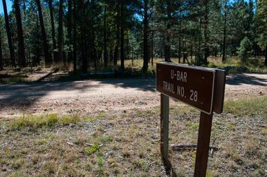 | Keywords: arizona coconino national forest coconinonationalforest fr 139 fr139 forest road 139 forestroad139 forest service forestservice mogollon rim mogollonrim mogollon rim ranger district mogollonrimrangerdistrict u-bar ubar u-bar trail ubartrail u-bar trail #28 ubartrail28 u-bar trail no. 28 ubartrailno28 usfs forest hiking outdoors sign trail outdoor Intersection of Forest Road 139 and U-Bar Trail No. 28. Dipping through intimate canyons and draws on its way between Pinchot Cabin and Buck Springs, the U-Bar trail is a historic trail that was once an important transportation route for rangers, ranchers, and hunters to get around the area. Ridge roads intersecting the trail provide multiple access points in addition to the trailheads at either end. Photo by Deborah Lee Soltesz, October 12, 2015. Credit: U.S. Forest Service, Coconino National Forest. For more information about this trail, see the U-Bar No. 28 trail and Cabin Loop Trail System descriptions on the Coconino National Forest website. Intersection of Forest Road 139 and U-Bar Trail No. 28. Dipping through intimate canyons and draws on its way between Pinchot Cabin and Buck Springs, the U-Bar trail is a historic trail that was once an important transportation route for rangers, ranchers, and hunters to get around the area. Ridge roads intersecting the trail provide multiple access points in addition to the trailheads at either end. Photo by Deborah Lee Soltesz, October 12, 2015. Credit: U.S. Forest Service, Coconino National Forest. For more information about this trail, see the U-Bar No. 28 trail and Cabin Loop Trail System descriptions on the Coconino National Forest website. |