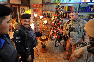 | Keywords: U.S. Air Force Joint Patrol DVIDS130596.jpg en U S Air Force Capt Matthew Ballanco discusses Iraqi traditions with police within a store during a night-time patrol along the 60th Street Market area meeting Iraqi civilians handing out toys to the children and speaking with local business owners Nov 15 in the Al Doura community located in southern Baghdad Iraq The Airman is assigned to Detachment 3 732nd Expeditionary Security Forces Squadron 1st Brigade Combat Team 4th Infantry Division 2008-11-15 Petty Officer 2nd Class Todd Frantom https //www dvidshub net/image/130596 081115-N-+++++-389 2008-11-23 17 15 FORWARD OPERATING BASE FALCON IQ PD-USGov-Military-Navy Forward Operating Base Falcon Images from DoD uploaded by Fæ |