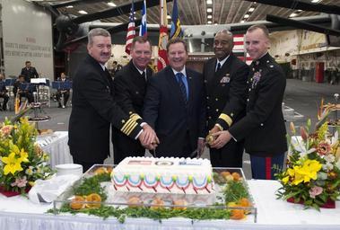 | Keywords: U.S. Ambassador to Chile Michael Hammer, center, and U.S. military officers cut a ceremonial cake during a reception aboard the amphibious assault ship USS America (LHA 6) Aug. 25, 2014, in Valparaiso, Chile 140825-N-LQ799-271.jpg en U S Ambassador to Chile Michael Hammer center and U S military officers cut a ceremonial cake during a reception aboard the amphibious assault ship USS America LHA 6 Aug 25 2014 in Valparaiso Chile The ship embarked on a mission to conduct training engagements with partner nations throughout the Americas before reporting to its new home port of San Diego The America was set to be ceremoniously commissioned Oct 11 2014 2014-08-25 MC1 Lewis Hunsaker http //www defenseimagery mil/imageRetrieve action guid e584dc26e00c640bdf13343b2137bd522dcd8fd0 t 2 Public domain photograph from defenseimagery mil http //www defenseimagery mil/imagery html guid e584dc26e00c640bdf13343b2137bd522dcd8fd0 140825-N-LQ799-271 2014-08-28 Valparaiso PD-USGov-Military-Navy Aboard USS America LHA-6 Images from DoD uploaded by Fæ |
