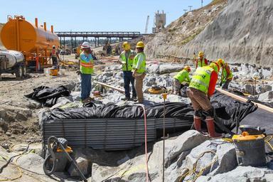 | Keywords: U.S. Army Corps of Engineers Build Spillway to Reduce Flood Risk in Sacramento.jpg en Contractors for the Sacramento District prepare for concrete placements at the Folsom Dam auxiliary spillway project's upper chute April 29 2015 in Folsom California Preparations include survey work surface cleaning and installing groundwater drainage systems underneath black fabric on right prior to nighttime placements The U S Army Corps of Engineers Sacramento District together with the U S Bureau of Reclamation and state and local partners is building the spillway to reduce flood risk throughout the Sacramento region U S Army photo by Todd Plain/Released 2015-04-29 https //www flickr com/photos/sacramentodistrict/17128113947 U S Army Corps of Engineers Sacramento District http //www hydraway net Website other versions USACE-Sacramento District https //flickr com/photos/52057813 N07/17128113947 2016-01-08 11 58 21 United States Government Work PD-USGov Drainage Contractors Sacramento Uploaded with UploadWizard |