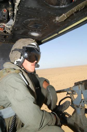 | Keywords: U.S Marine Sergeant Michael Johnson DVIDS10463.jpg en U S Marine Sergeant Michael Johnson an H-1 Huey helicopter crew chief with Marine Medium Helicopter Squadron 163 attached to the 13th Marine Expeditionary Unit Special Operations Capable looks out of the door of the aircraft while flying to a training range during Exercise Bright Star Sept 24 The exercise is designed to enhance the interoperability and cohesiveness of coalition forces through various training scenarios to include amphibious and combined-arms operations The six-week exercise affords U S service members the opportunity to build awareness and relationships with the host nation of Egypt and fellow coalition forces The 13th MEU is currently on a Western Pacific deployment in support of the Global War on Terrorism Official Marine Corps Photo by Cpl Chad H Leddy released 2005-09-24 https //www dvidshub net/image/10463 10463 2005-09-28 14 36 EG PD-USGov 13th Marine Expeditionary Unit Images from DoD uploaded by Fæ |