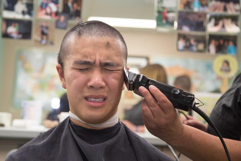 Keywords: r day rday reception day receptionday class 2020 new cadets newcadets cadets cadet basic training cadetbasictraining people A new cadet receives a haircut during the U.S. Military Academy at West Point’s Reception Day, June 27, 2016. More than 1,300 new cadets make up the Class of 2020 including 282 women, 425 minorities, 15 international cadets and 13 combat veterans. (U.S. Army photo by: Staff Sgt. Vito T. Bryant) A new cadet receives a haircut during the U.S. Military Academy at West Point’s Reception Day, June 27, 2016. More than 1,300 new cadets make up the Class of 2020 including 282 women, 425 minorities, 15 international cadets and 13 combat veterans. (U.S. Army photo by: Staff Sgt. Vito T. Bryant)