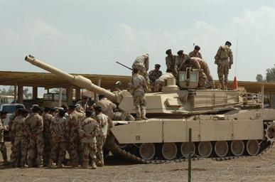 | Keywords: U.S. Soldiers get to know Iraqi counterparts in partnership day DVIDS40961.jpg en Iraqi army troops from the 2nd Brigade 9th Iraqi Army Division Mechanized take a close-up look at an M1A2 Abrams tank April 2 on Camp Taji Iraq 2007-04-03 Staff Sgt Jon Cupp https //www dvidshub net/image/40961 40961 2007-04-09 13 08 TAJI IQ PD-USGov Camp Taji Images from DoD uploaded by Fæ | ||||