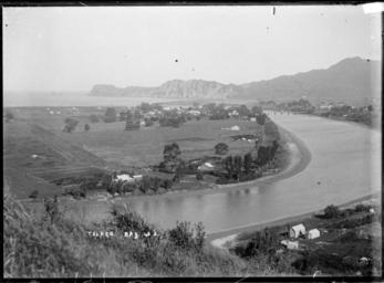| Keywords: blackandwhite monochrome outdoor photo border black and white View looking south-east of Tolaga Bay with the Uawa River in the foreground and to the right. The township and bridge can be seen in the middle distance, and coastline and Mitre Rocks in the far distance. Photograph taken ca 1900-1930 by William Archer Price. Inscriptions: Inscribed - Photographer's title on negative -bottom left: Tolago Bay. 43 E. Quantity: 1 b&w original negative(s). Physical Description: Dry plate glass negative 4.5 x 6.5 inches Uawa River, Tolaga Bay. Price, William Archer, 1866-1948 :Collection of post card negatives. Ref: 1/2-000159-G. Alexander Turnbull Library, Wellington, New Zealand. natlib.govt.nz/records/22505020 View looking south-east of Tolaga Bay with the Uawa River in the foreground and to the right. The township and bridge can be seen in the middle distance, and coastline and Mitre Rocks in the far distance. Photograph taken ca 1900-1930 by William Archer Price. Inscriptions: Inscribed - Photographer's title on negative -bottom left: Tolago Bay. 43 E. Quantity: 1 b&w original negative(s). Physical Description: Dry plate glass negative 4.5 x 6.5 inches Uawa River, Tolaga Bay. Price, William Archer, 1866-1948 :Collection of post card negatives. Ref: 1/2-000159-G. Alexander Turnbull Library, Wellington, New Zealand. natlib.govt.nz/records/22505020 |