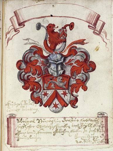 | Keywords: UBHD Cod Sal IX 58 133r Sturmlin.jpg Wappen aus dem Wappenbuch des Hofpfalzgrafen Franz Rasso Gotthardt Entstanden in Süddeutschland Passau Universitätsbibliothek Heidelberg Cod Sal IX 58 <br />Wappen http //digi ub uni-heidelberg de/diglit/salIX58 after 1597 1623 “1631 Franz Rasso Gotthardt PD-old-100 Wappenbuch der Hofpfalzgrafen Coats of arms of families of Germany - S Sturmlin Argent a chevron gules 3 six rays gules in heraldry Gules a lion argent Lions rampant in crest Bull horns in crest Argent and gules in heraldry Party per fess shields |