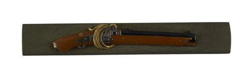 | Keywords: Uchikoshi Hirochika - Kozuka of a Flintlock Pistol - Walters 51752.jpg On the front of the kozuka is a relief carving of a pistol made of gold silver and copper The subject matter is an interesting pairing with the traditional sword on which the kozuka would have been mounted On the reverse is a landscape scene The edge of a torii gate is visible on the right with a path extending towards the left into trees The artist's signature is also on the reverse ca 1825 late Edo shibuichi gold silver copper cm 9 6 accession number 51 752 5034 William T / Henry Walters Collection Baltimore date and mode of acquisition unknown Walters Art Museum Henry Walters Acquired by William T or Henry Walters Signature Hirochika place of origin Japan Walters Art Museum license Tosogu Japanese sword fittings in the Walters Art Museum Uchikoshi Hirochika Media contributed by the Walters Art Museum needs category review |