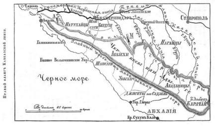 | Keywords: Ugrinovich. The right flank.jpg Кавказской линии буквами А и обозначены от яды Адагумский и айкопский Ка та из статьи Уг инович К К аткий обзо военных действий на Кавказе в минувшем 1857 году // Русский вестник - 1858 - 1 scan from www vostlit info http //www vostlit info/Texts/Dokumenty/Kavkaz/XIX/1840-1860/Ugrinovic/1 JPG link 1858 К Уг инович Russian fortified lines Maps of the Caucasus during the Caucasian War 1817 1864 PD-old | ||||