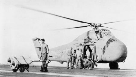 | Keywords: UH-34D HMM-162 on USS Oriskany (CVA-34) 1960.jpg A U S Marine Corps Sikorsky HUS-1 Seahorse helicopter from Marine Medium Helicopter Transport Squadron HMM-162 Golden Eagles aboard the aircraft carrier USS Oriskany CVA-34 delivering ordnance Oriskany with assigned Carrier Air Group 14 CVG-14 was deployed to the Western Pacific from 14 May to 15 December 1960 U S Navy photo http //navysite de/cruisebooks/cv34-60/078 htm from the http //navysite de/cruisebooks/cv34-60/index_004 htm USS Oriskany CVA-34 1960 cruise book available at http //navysite de/cruisebooks/index html Navysite de 1960 USN PD-USGov-Military-Navy Sikorsky H-34 Marine Medium Tiltrotor Squadron 162 Aboard USS Oriskany CV-34 |