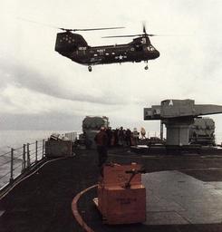 | Keywords: UH-46D of HC-5 delivers cargo to USS Arkansas (CGN-41) in 1986.jpg A U S Navy Boeing-Vertol UH-46D Sea Knight BuNo 151932 of Helicopter Combat Support Squadron 5 HC-5 Providers from the combat stores ship USS White Plains AFS-4 delivers cargo to the guided missile cruiser USS Arkansas CGN-41 in 1986 U S Navy photo http //www navysite de/cruisebooks/cgn41-86/099 htm from the http //www navysite de/cruisebooks/cgn41-86/index_011 htm USS Arkansas CGN-41 1986 cruise book available at http //navysite de/cruisebooks/index html Navysite de 1986 U S Navy PD-USGov-Military-Navy USS Arkansas CGN-41 UH-46D Sea Knight Helicopter Combat Support Squadron 5 United States Navy |